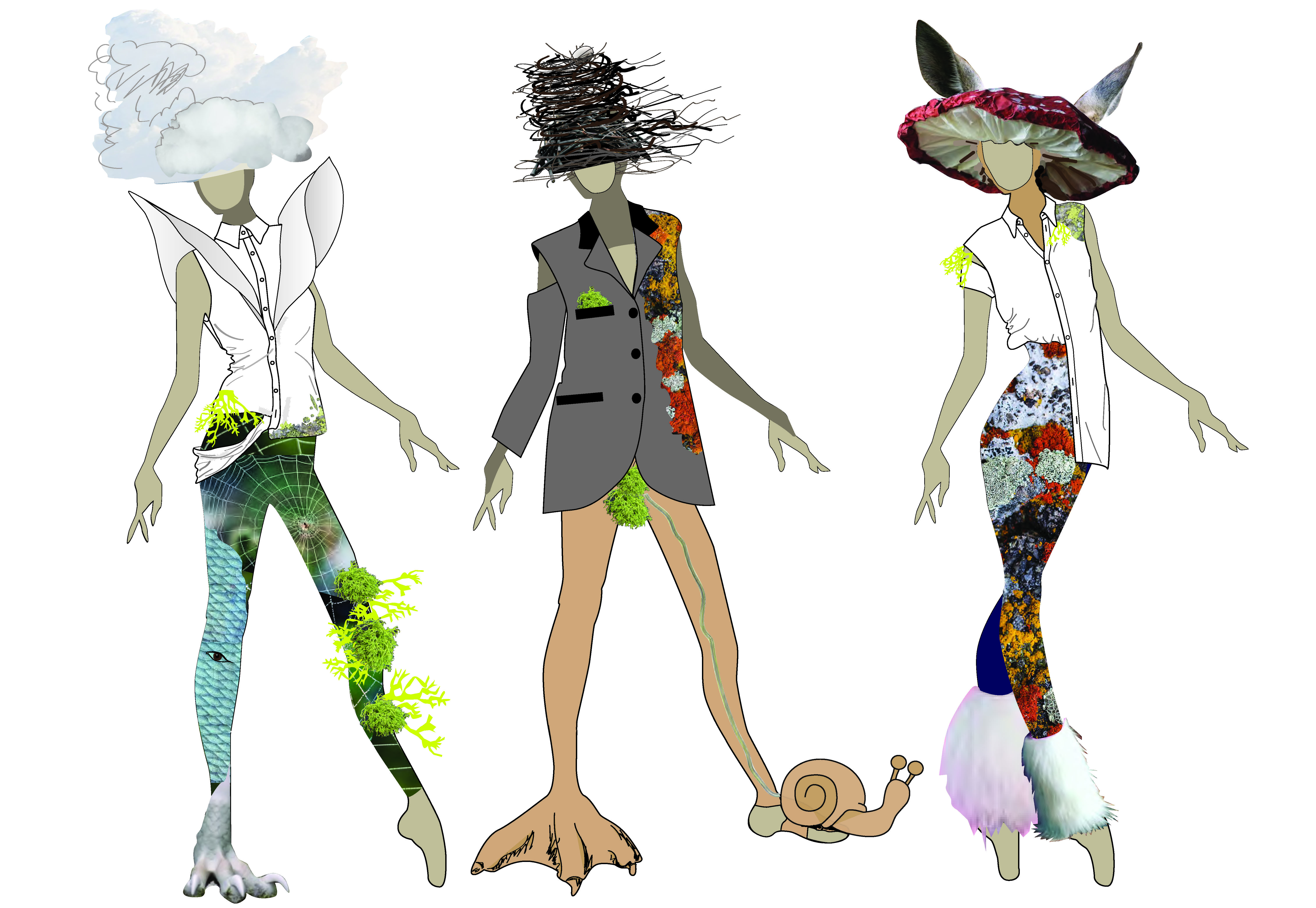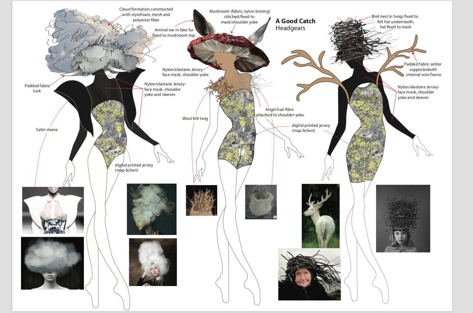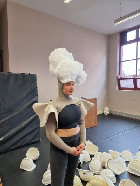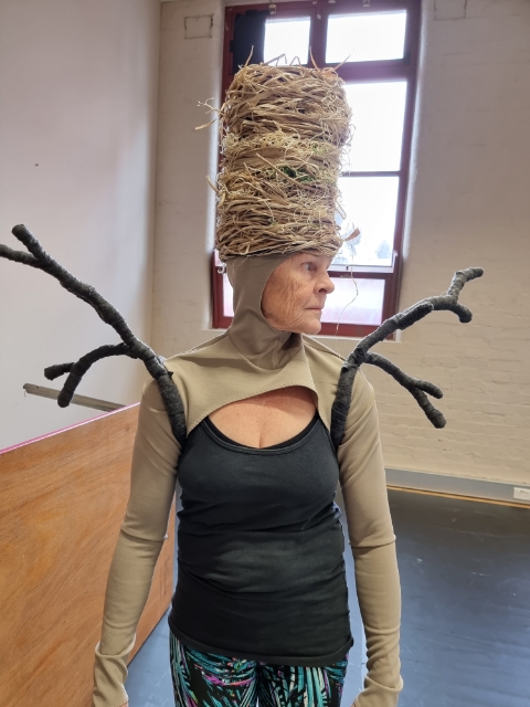 We request a prototype of the head pieces as soon as possible in order to physically work with, and discover the new movement vocabularies they produce. Meanwhile, we imagine inviting the nest, mushroom and cloud to the table, they become our imaginary ‘companion species’.[9]