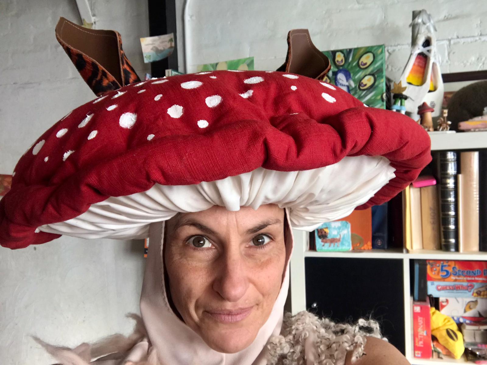 Clara delivers our headpieces for trials. We devise new sequences while wearing these soft sculptures that limit our peripheral vision and offer new bodily approaches, we improvise with the table, allowing our partial symbionts to alter our movement choices. We are tiptoeing, these costumes require some caution, Spenser (see relations) is concerned we look childish; perhaps if the bright red mushroom is a darker colour?